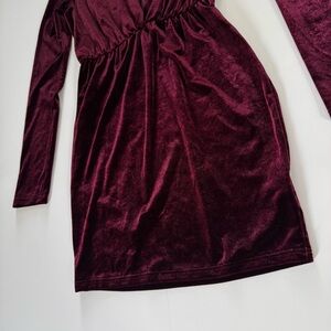 Blooms In The City Velvet Deep V Neck Burgundy Maroon Long Sleeve Dress Medium