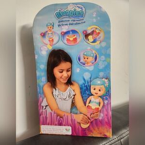 Introducing the Bloopies Shimmer Mermaids - Alice Mermaid Doll With Removable Tail! This 11-inch mermaid doll is a must-have for any Bloopies collector or fan. With pink hair and blue eyes, Julia is a beautiful and unique addition to your collection. This original, licensed reproduction comes in its original packaging (unopened) and includes one doll with a removable tail. The doll is made of plastic and has a medium complexion.