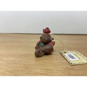 Blossom Bucket Christmas Bear With Birdhouse and Cardinal Resin Figurine 2 inch Brand new with tag Dressed out with holly and ivy