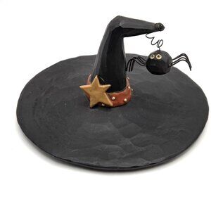 Blossom Bucket Halloween Witch Hat With Hanging Spider Figurine By B. Lloyd 2003