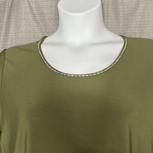 Blossom By P Handkerchief Blouse Army Green 3/4 Sleeves 1X New