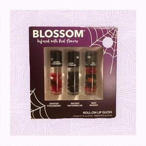 Brand new and sealed BLOSSOM Roll-On Lip Gloss Set! This beautiful 3-piece collection is infused with real flowers and includes three fun, fruity flavors: