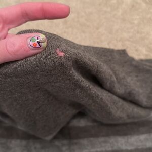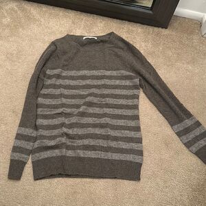 New never worn, tan and grey stripped sweater, great basic for fall features one minor hole, near neck can easily be fixed with a few stitches, great weight and staple for your closet