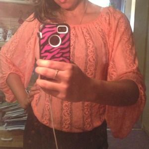 Peach see through design blouse. Perfect with shorts or jeans. Worn once