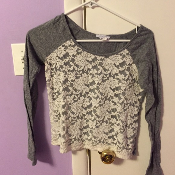 Grey sleeves and back and lace front. Barely worn