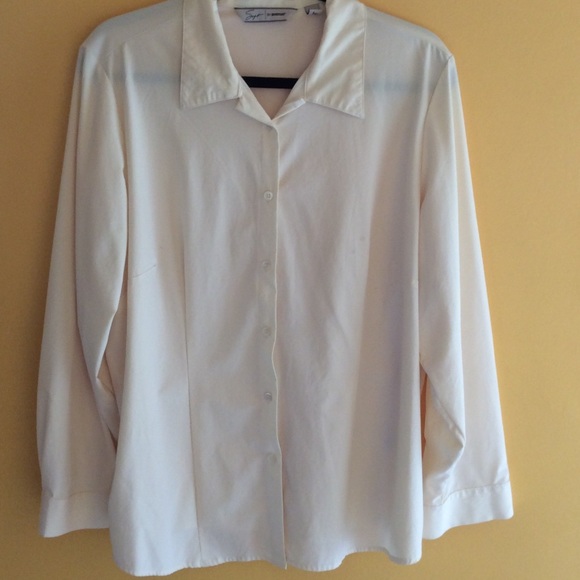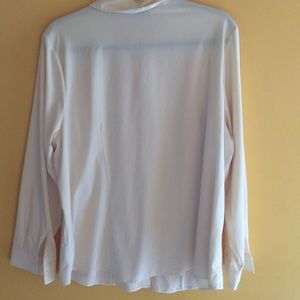 Cream colored blouse, very loose and flowy, sheer, good condition, small stain on left side
