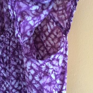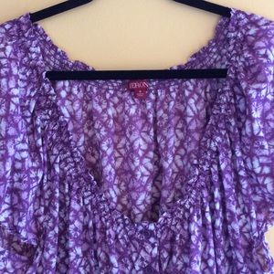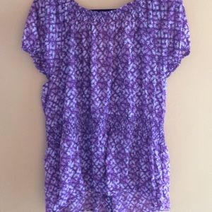 Purple and white button down blouse, very loose and flowy, thin material, good for warm material