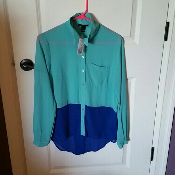 Light and dark blue color block blouse. Never worn size medium