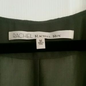 Army green colored, long blouse. The sleeves are loose and flowy. Super cute with leggings and brown boots for fall.