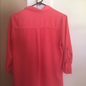 Great fit! Longer in the back than front. Worn a hand full of times with jeans and also works great for work tucked into a skirt.