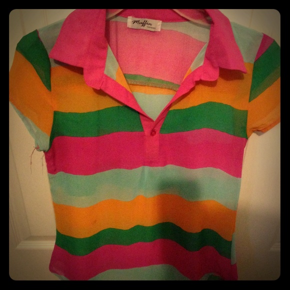 Chiffon stripe splicing multicolor material polyester size one.