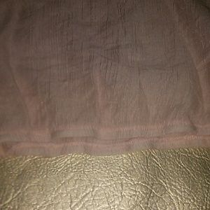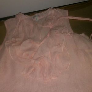 Light pink sheer blouse with ruffle detailing and front tie. Elastic at bottom.