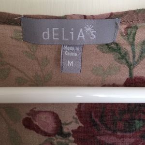 This is a medium blouse from deliasclothing.com. The dimensions are: shoulder to bottom: 25 inches, armpit to armpit: 16 inches, however it is flowy so it will not be tight. Only wore a couple of times, just not my style😊