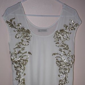 Cream top sheer back and gold sequins