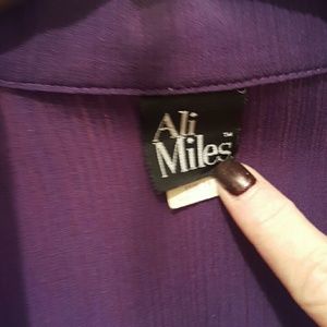 Long sleve with silver buttons and is royal purple. Material is 65% Polyester and 35% Rayon. Size 14. Used in excellent condition. Smoke free home!
