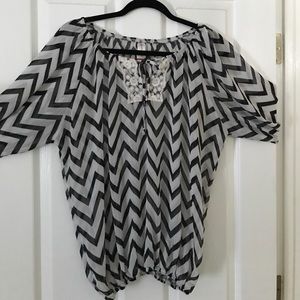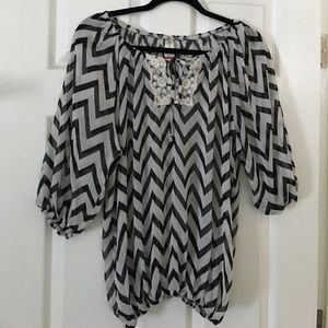 Chevron sheer elastic waist blouse. Lovely lightweight top for summer. 50" around bust but blousy. 25" from shoulder to elastic hem.