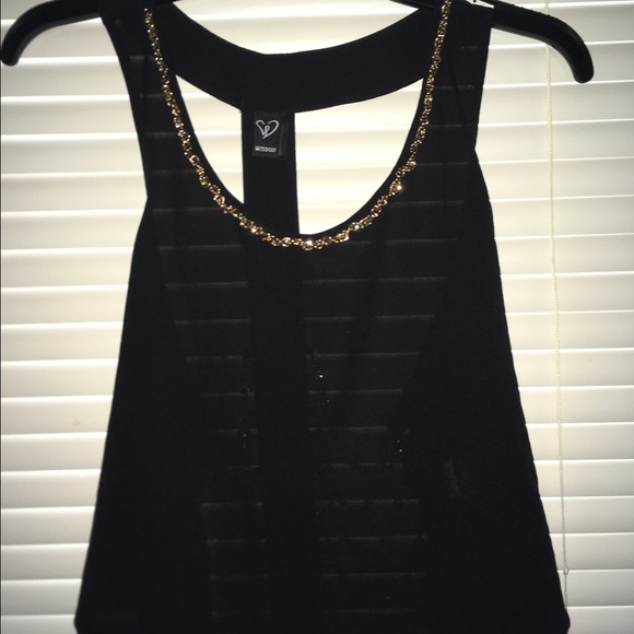 Beautiful blouse black and gold size small but can fit medium and large also Great for clubbing or just going out