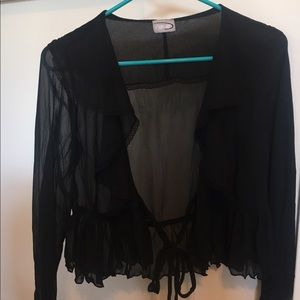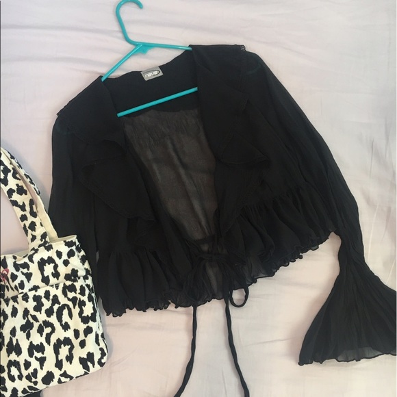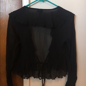 Black sheer blouse. Detailing in photos. Tie is adjustable so OS.