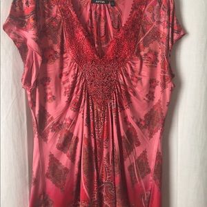 Casual top. 95% Poly 5% spandex. Mid hip length.