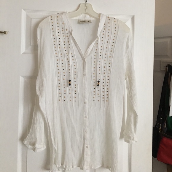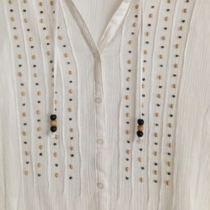 White crinkle cotton blouse w/beading. Says XL but it's really not unless your not busty