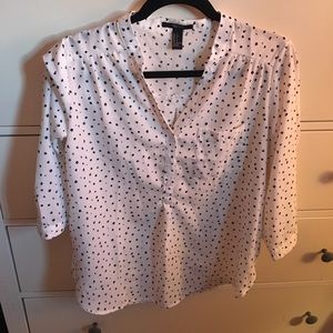 White blouse with black spots. Three quarters sleeves. Never been worn. Size small.