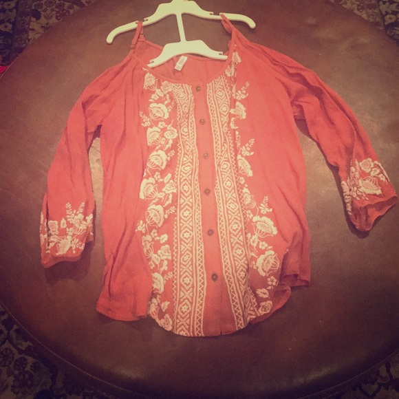 Floral blouse with shoulders cut out. You can dress up or wear casual