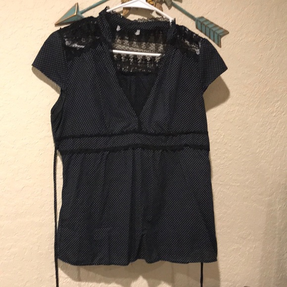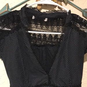 Black lace and polka dot blouse