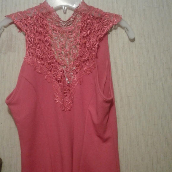 Sleeveless, with crochet neckline and ribbon tie at back