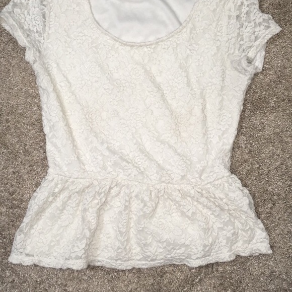 Super cute lace top, worn a bit, but still cute and in good shape!