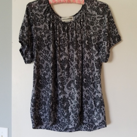Black and white flowered shirt sleeve blouse