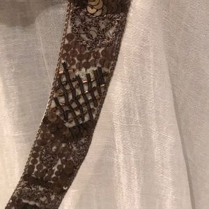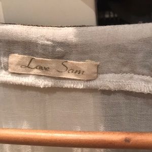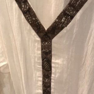 Love Sam white blouse size M-L loose fit with bronze color bead work white linen silk very light wide sleeved! New never been worn but no tags!