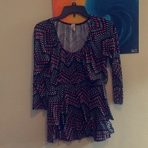 White, pink and black design, with multiple layers of ruffles. Good thick material that won't be see-though. Only worn a few times. I'm also not set on any of my prices necessarily so let me know if another price might work better.