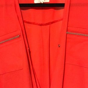 Orange twisted top with zippers and button on chest, worn once
