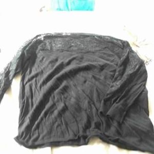 Black blouse with lace sheer lace top. I have 2 of this shirt. I wore it with the floral shirt I have listed.