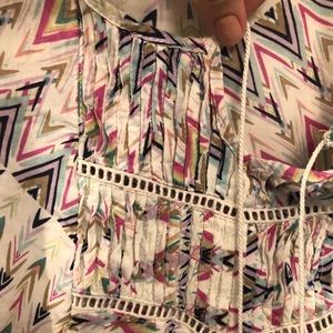 Flattering blouse perfect for wear at a business casual office. Beautiful chest detailing and tassels which are great for playing with while thinking at said office. Looks good with khakis or jeans.
