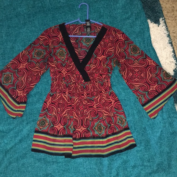 Transparent. Colorful. Vneck. Bell sleeves. Flowy bottom. Excellent condition