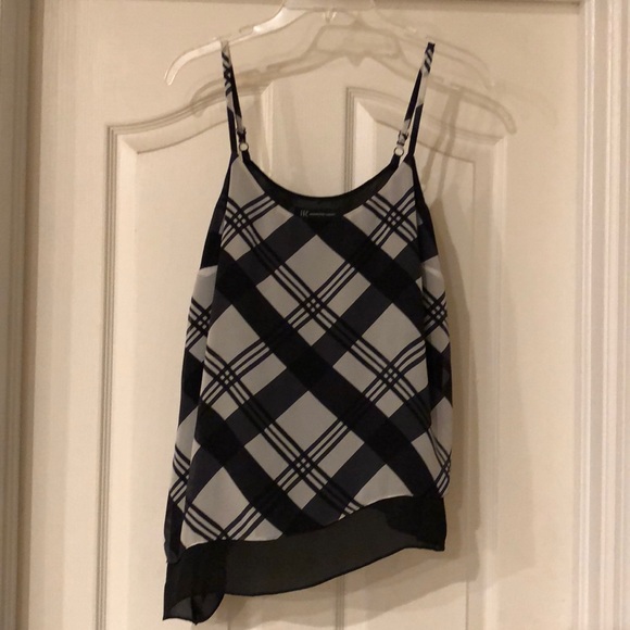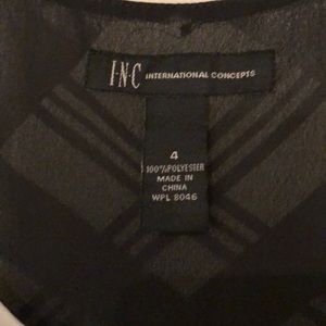 INC size 4 black and white blouse. Tank sleeves, asymmetrical hem. Very stylish. Only worn once. Like new condition.