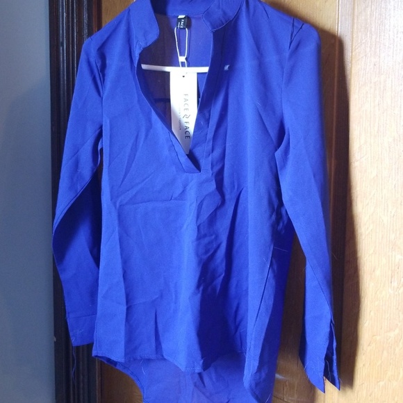 Blue sheer blouse. Can be work long sleeve or buttoned up as three quarter sleeves. Never worn.