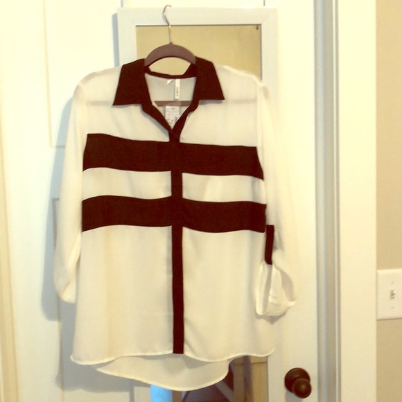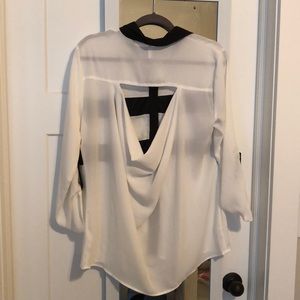 Light Cream colored blouse with opening in the back.