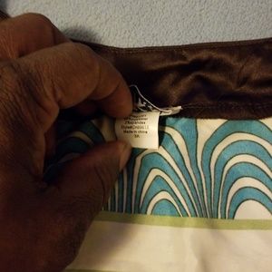 Silky brown, teal and white blouse