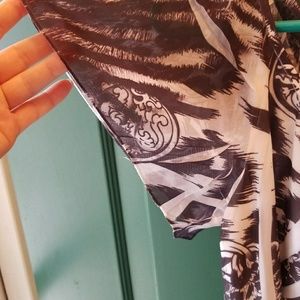 CATO sz Medium but will fit Large as well black and white silky sheer underlining built in white sheer tank super soft flowy blouse.3 layers on the front of blouse VERY BEAUTIFUL