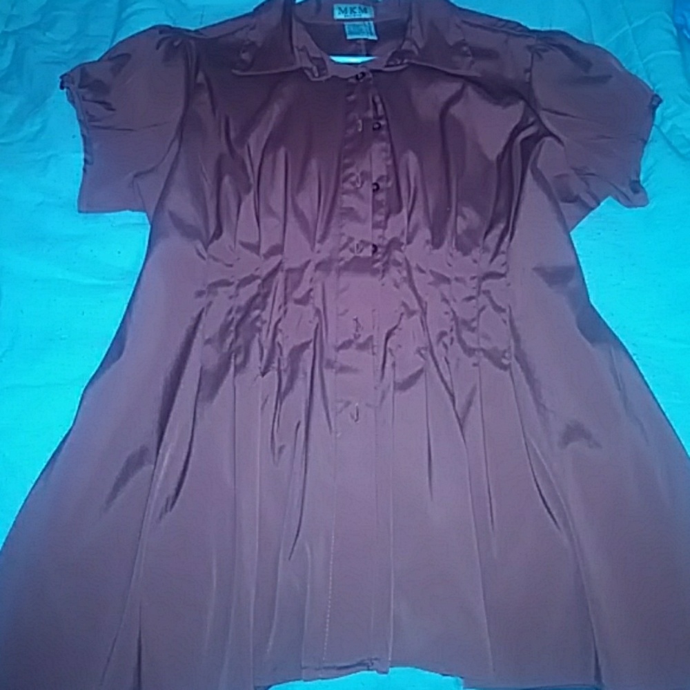 Rust color ...button up front...ties in back.