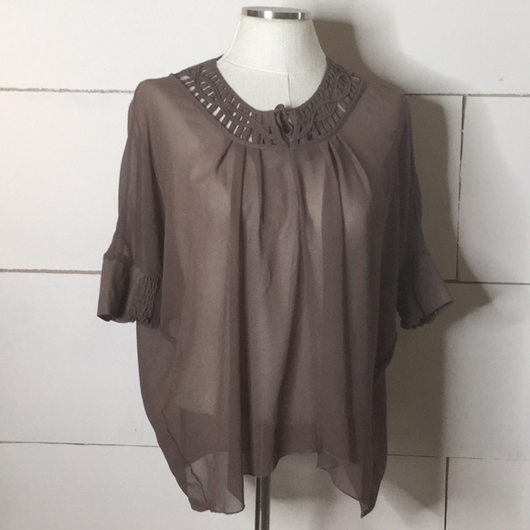 Super cute see-through blouse with cute stitching and ruffle sleeves