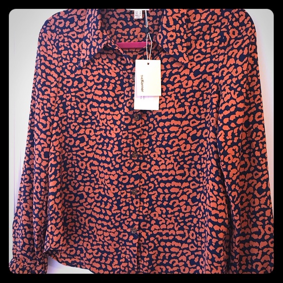 The Korner blouse NWT Size XS. Fits like a 2/4 IMO. Rust/navy poly blend feels great on!
