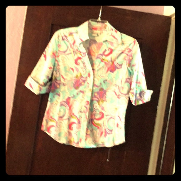 Beautiful spring colors! 3/4 sleeve button up front v neck fitted body really cute!