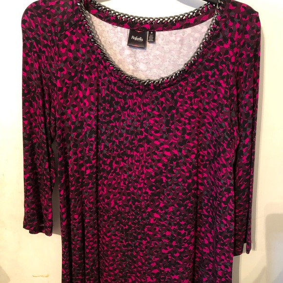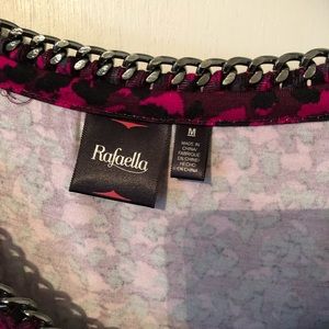 Very cute, has a chain sewn around neck of shirt, soft material. Pink and black.