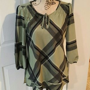 Green and black Very comfortable Skirt and pants are cute with this top