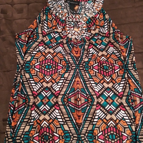International Concepts sleeveless sequined printed blouse.