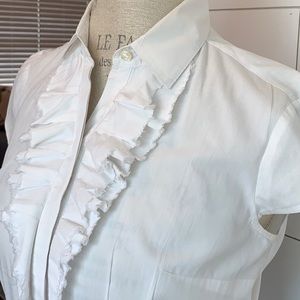 Mossimo white blouse cap sleeves and ruffle front Cotton blend Previously worn No visible signs of wear Bundle and save
