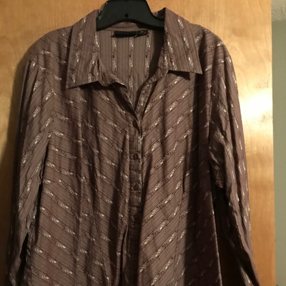 Stretchy, pretty pattern, brown blouse. Comfy! Excellent condition, worn only a few times.